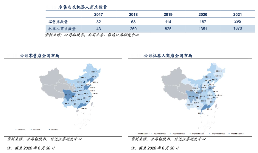 經(jīng)典案例:根據(jù)公司招股書、信達證券研發(fā)中心等綜合資訊表明,泡泡瑪特線下渠道已基本完成全國覆蓋。截至2021年末,公司擁有295家零售店與1870家機器人商店。截至2020年6月末,公司零售終端已基本完成全國布局,僅個別省份尚未覆蓋,其中零售店北京、上海、廣東門店數(shù)較多,分別為 35/18/10 家門店,機器人商店北京、上海、廣東門店數(shù)排名前三,分別為 164/107/93 家。