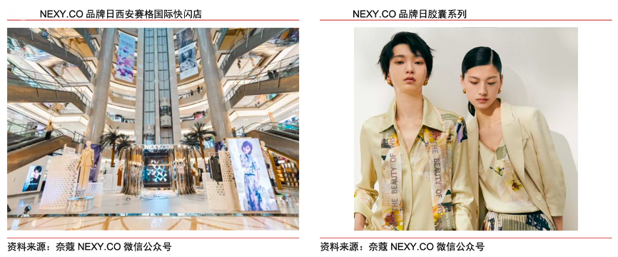 經(jīng)典案例:根據(jù)奈蔻NEXY.CO微信公眾號(hào)、中信證券研究部等綜合資訊表明,2021 年 7 月 12 日到 7 月 18 日品牌周,奈蔻在上海、西安、成都、南京等城市開(kāi)設(shè)線(xiàn)下快閃店,開(kāi)展智美探覓主題大秀,并攜手代言人王珞丹同步推出品牌日膠囊系列。該系列將品牌花“木蘭花”融入產(chǎn)品設(shè)計(jì),贊頌當(dāng)代智美女性淡然、堅(jiān)韌的品格意志,并全面升級(jí)天然材料和環(huán)保工藝,融合智美定位與環(huán)保理念。
