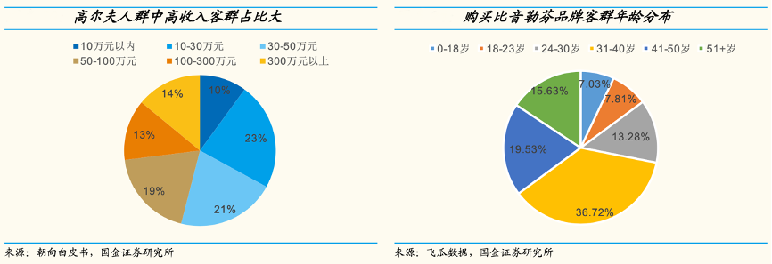 經(jīng)典案例:根據(jù)朝向白皮書、飛瓜數(shù)據(jù)、國金證券研究所等綜合資訊表明,比音勒芬品牌從高爾夫差異化切入高端服飾賽道,核心客群定位 25~40 歲高收入男性,多年以來其堅持高品質(zhì)、高品位、高科技和創(chuàng)新的“三高一新”產(chǎn)品設計研發(fā)理念,客戶粘性高、復購率高。