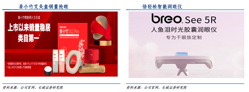經(jīng)典案例:根據(jù)公司官網(wǎng)、長(zhǎng)城證券研究院等綜合資訊表明,優(yōu)異的自研實(shí)力助力倍輕松不斷擴(kuò)充產(chǎn)品品類,其于2021 年 8 月推出首款智能艾灸盒,切入理療賽道,推出至今智能艾灸盒銷量已超過 20 萬臺(tái),累計(jì)銷量過億,相當(dāng)于公司同期收入的10%。2022年5月,公司針對(duì)干眼人群推出智能潤(rùn)眼儀,進(jìn)一步凸顯新品類耗材屬性,完善硬件+耗材的商業(yè)模式,助力公司提升復(fù)購(gòu)率和 粘性。