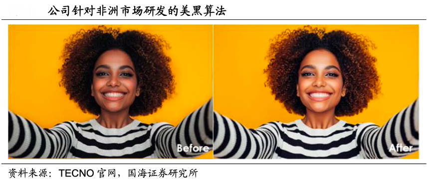 經(jīng)典案例:根據(jù)TECNO官網(wǎng)、國海證券研究所等綜合資訊表明,傳音控股主打高性價(jià)比,注重客戶需求和體驗(yàn),針對拍照、上網(wǎng)、充電等進(jìn)行深度本地化優(yōu)化,不斷加大研發(fā)投入解決用戶痛點(diǎn)。2020 年-2022 年前三季,公司研發(fā)投入同比增速保持在 30%以上,期間已經(jīng)累計(jì)投入超過 40 億元,并針對非洲市場開發(fā)了深膚色拍照、硬件定制化、防水防侵蝕、大電流快充等技術(shù)。