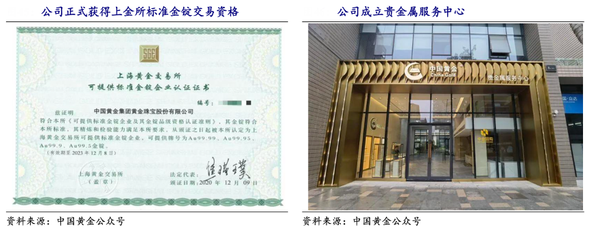 經(jīng)典案例:根據(jù)中國黃金公眾號、開源證券研究所等綜合資訊表明, 2020 年 12 月,中國黃金公司正式獲得上海黃金交易所標(biāo)準(zhǔn)金錠交易資格, 中金精煉的產(chǎn)品順利通過上海黃金交易所驗收。此外,中國黃金加速布局線上、線 下黃金回購渠道,夯實貴金屬回購產(chǎn)業(yè)鏈。2021年9月,中國黃金于深圳設(shè)立貴金 屬服務(wù)中心、成立線上“中國黃金回收平臺”小程序,2022 年 2 月于昆明設(shè)立中國 黃金昆明貴金屬回購店,2022 年 5 月又于廣東東莞、番禺分別設(shè)立貴金屬服務(wù)中心。