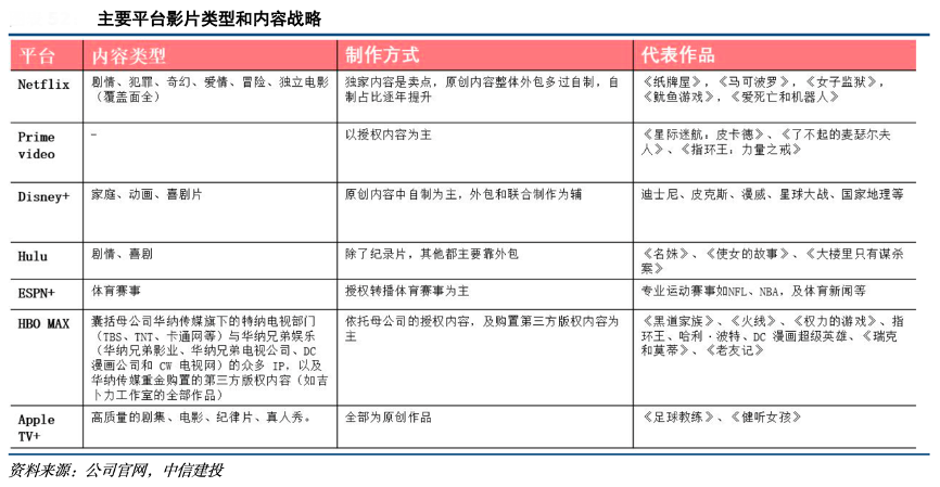 經(jīng)典案例:根據(jù)公司官網(wǎng)、中信建投等綜合資訊表明,從劇集上線模式看,奈飛和其他平臺(tái)存在較大區(qū)別。Netflix 采用的是整季上線,播放周期短,能夠最大程 度滿足客戶的追劇需求,而 Disney+、Hulu、HBO MAX 等平臺(tái)更多地采用周播的模式,播放周期長(zhǎng),對(duì)于不喜歡等待 的用戶觀看體驗(yàn)較差,但是高口碑的劇集會(huì)給平臺(tái)帶來較高的流量和客戶留存度。