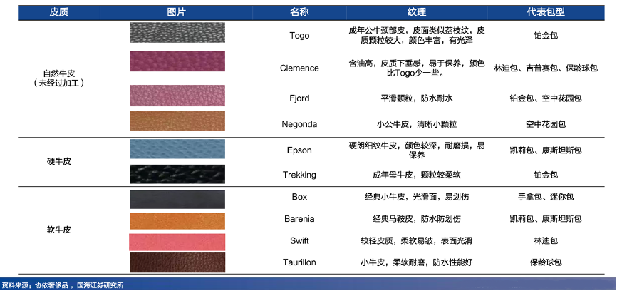 經典案例:根據協依奢侈品、國海證券研究所等綜合資訊表明,愛馬仕擁有全球頂級皮革商的皮革優(yōu)先選擇權,使用皮質包括優(yōu)質牛皮、山羊皮,以及鱷魚皮、蜥蜴皮和鴕鳥皮等稀有皮質。愛馬仕每種皮革都有對應的名稱,具有一定的社交圈“黑話”功能與話題度。