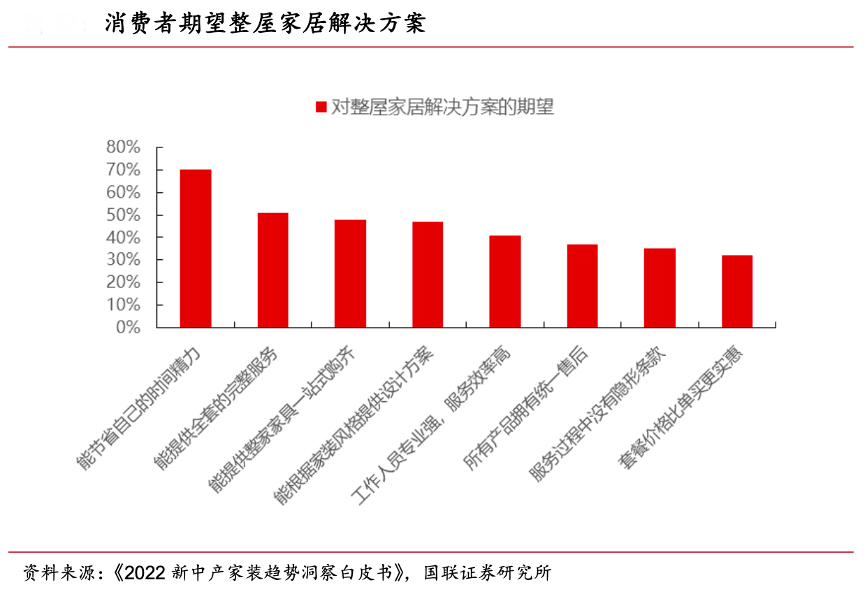 經典案例:根據艾瑞咨詢《2022 新中產家裝趨勢洞察白皮書》、國聯(lián)證券研究所等綜合資訊表明,中產用戶在裝修過程中,面臨的最大三個痛點是消耗腦力及體力、裝修風格不統(tǒng)一及預算超支。近 9 成中產用戶期望品牌提供一站式解決方案,省心、個性化定制是這一群體的核心訴求。