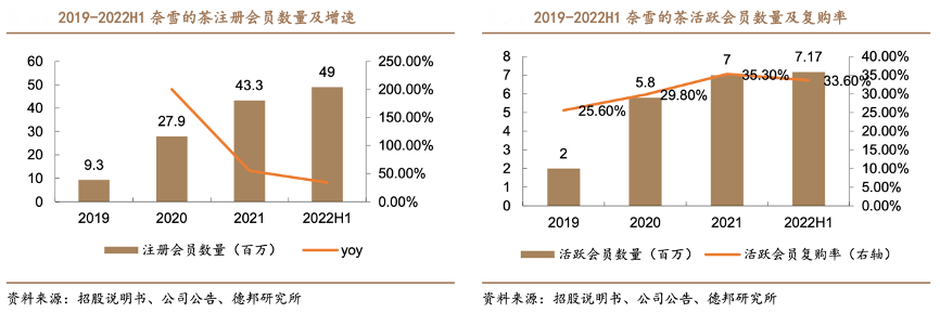經(jīng)典案例:根據(jù)招股說明書、公司公告、德邦研究所等綜合資訊表明, 2019 年 9 月奈雪的茶推出品牌會員體系,設(shè)立 1-6 級分階獎勵機制,會員積分免費兌換品牌產(chǎn)品。2022年中報,奈雪的注冊會員數(shù)量達(dá)到 4900 萬名,同比增長 34.25%,其中活躍會員數(shù) 717 萬名,活躍會員復(fù)購率達(dá)到 33.60%。