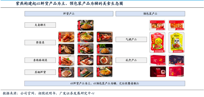 經(jīng)典案例:根據(jù)公司官網(wǎng)、招股說明書、廣發(fā)證券發(fā)展研究中心等綜合資訊表明,紫燕食品以夫妻肺片和整禽類大單品為核心,通過持續(xù)的研發(fā)投入形成覆蓋多種禽畜類及素菜的產(chǎn)品矩陣,憑借集中化整合生產(chǎn)基地帶來更標(biāo)準(zhǔn)穩(wěn)定的產(chǎn)品品質(zhì)。