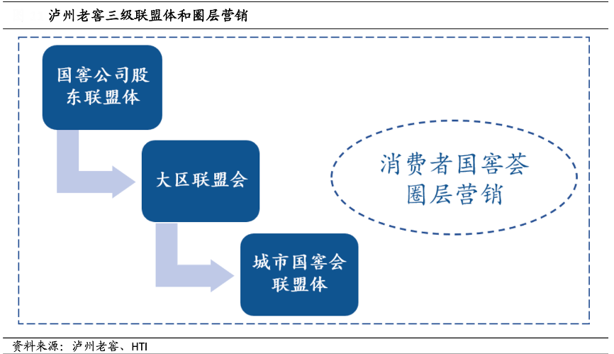 經(jīng)典案例:根據(jù)瀘州老窖、HTI等綜合資訊表明,為了支持品牌專營(yíng)模式,瀘州老窖公司設(shè)立了“國(guó)窖公司股東聯(lián)盟體—大區(qū)聯(lián)盟會(huì)—城市國(guó)窖會(huì)聯(lián)盟體”三級(jí)聯(lián)盟體,讓業(yè)務(wù)團(tuán)隊(duì)?wèi)?yīng)用適合當(dāng)?shù)厍闆r的策略攻占市場(chǎng)。國(guó)窖公司股東聯(lián)盟體,主要吸收全國(guó)性的大商入股,是基本盤。大區(qū)聯(lián)盟體是在各個(gè)大區(qū)內(nèi)成立, 通過(guò)分紅比例調(diào)控的手段來(lái)強(qiáng)化渠道秩序的維護(hù)。三級(jí)城市聯(lián)盟是由區(qū)域內(nèi)所有經(jīng)銷商和核心終端門店組成。