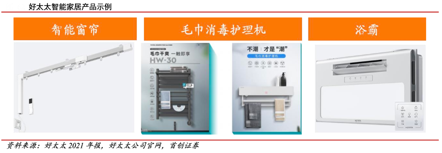 經(jīng)典案例:根據(jù)好太太2021年報、好太太公司官網(wǎng)、首創(chuàng)證券等綜合資訊表明,好太太自 2016 年就開始從單一賽道向多賽道智能家居布局,公司依托核心產(chǎn)品智能晾衣機與智能鎖,圍繞智能家居領(lǐng)域展開布局,產(chǎn)品逐步延伸至智能窗簾、電熱毛巾架、智能面板、開關(guān)等智能家居產(chǎn)品。2020 年初,“好太太”商標獲準在智能家居類別應用同一品牌,原智能門鎖品牌“科徠尼”更名“好太太”,使得公司在資源投放、營銷活動等方面更加協(xié)同高效;2022 年初,為更加聚焦年輕人群織物護理需求,公司推出子品牌“曬客”搶奪年輕消費者市場機遇。