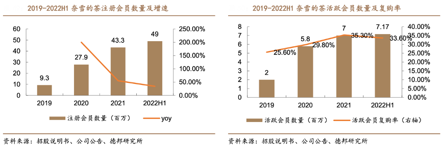 經(jīng)典案例:根據(jù)招股說明書、公司公告、德邦研究所等綜合資訊表明,奈雪的茶2019 年 9 月推出品牌會員體系,設立 1-6 級分階獎勵機制,會員積分免費兌換品牌產(chǎn)品。2022 年中報,奈雪的注冊會員數(shù)量達到 4900 萬名,同比增長 34.25%,其中活躍會員數(shù) 717 萬名,活躍會員復購率達到 33.60%。