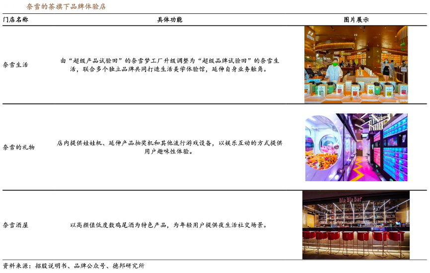 經(jīng)典案例:根據(jù)招股說明書、品牌公眾號、德邦研究所等綜合資訊表明,奈雪的茶門店作為品牌直接觸達用戶的核心場景,其在常規(guī)茶飲門店之外,還提供消費場景更多元化的品牌體驗店(奈雪生活、奈雪的禮物、奈雪酒屋),通過增加場景觸達更多消費者,將品牌定位從銷售“茶飲產(chǎn)品”進化為“生活方式”。
