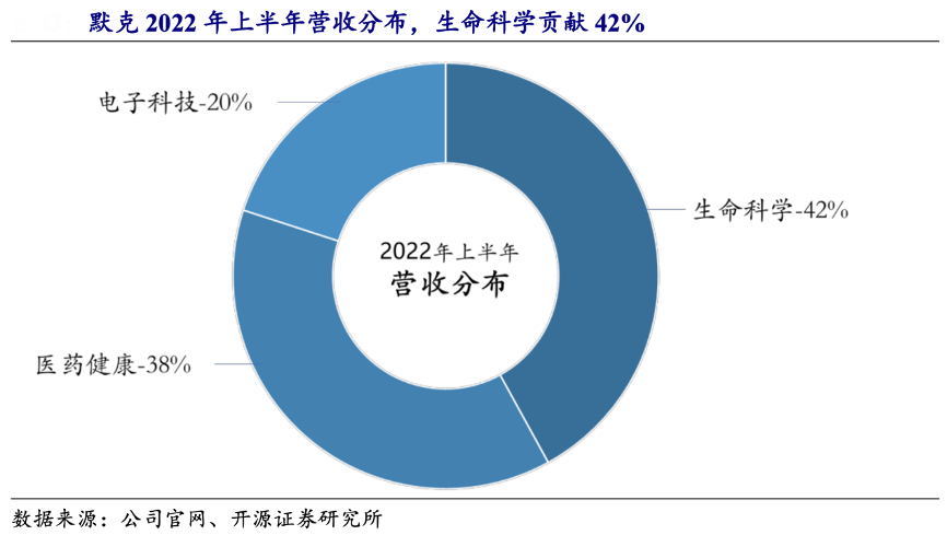 經(jīng)典案例:根據(jù)公司官網(wǎng)、開源證券研究所等綜合資訊表明,默克 2022 年半年報(bào)數(shù)據(jù)顯示,生命科學(xué)、醫(yī)藥健康、電子科技業(yè)務(wù)對(duì)于營(yíng)業(yè)收入的貢獻(xiàn)分別為 42%、38%和 20%。