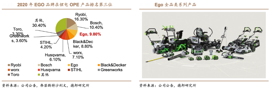 經(jīng)典案例:根據(jù)公司公告、弗若斯特沙利文、德邦研究所等綜合資訊表明,泉峰公司擁有較高的市場敏銳度,EGO 產(chǎn)品適用的 Arc-LithiumTM電池平臺為業(yè)內(nèi)首批 56V 電池平臺之一,以 POWER+電池平臺技術(shù)、智能電源管理和革命性的冷卻技術(shù),實現(xiàn)高功率和性能。
