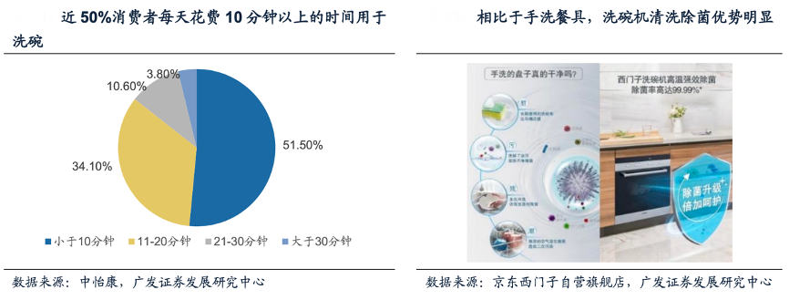 經(jīng)典案例:根據(jù)中怡康、京東西門子自營旗艦店、廣發(fā)證券發(fā)展研究中心等綜合資訊表明,結(jié)合中怡康數(shù)據(jù),接近50%的消費(fèi)者每天花費(fèi)10分鐘以上的時(shí)間洗碗,而洗碗機(jī)解決了洗碗費(fèi)時(shí)費(fèi)力的痛點(diǎn),用戶一鍵便可完成洗碗工作。同時(shí)相比于用抹布手洗,洗碗機(jī)能夠有效地徹底去除餐具上殘油的油膩,還能利用高溫環(huán)境有效殺死大腸桿菌等常見病毒病菌,除菌率高達(dá)99.99%。