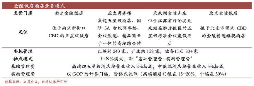 經(jīng)典案例:根據(jù)公司公告、財(cái)通證券研究所等綜合資訊表明,截止 22Q3,金陵飯店旗下有直營(yíng)門店 4 家,連鎖加 盟簽約近 240 家,其中已開業(yè) 158 家,儲(chǔ)備門店 80+。目前直營(yíng)門店均為五星級(jí)全服務(wù)酒店,年?duì)I收規(guī)模在1.5 億,22 年下半年籌劃建設(shè) 2 家中高端有限服務(wù)門店,多品牌戰(zhàn)略帶來直營(yíng)業(yè)務(wù)進(jìn)一步豐富。