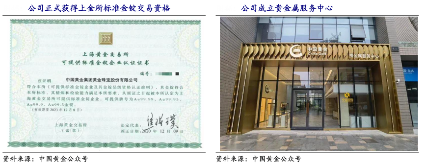 經(jīng)典案例:根據(jù)中國(guó)黃金公眾號(hào)、開源證券研究所等綜合資訊表明,2020 年 12 月,中國(guó)黃金公司正式獲得上海黃金交易所標(biāo)準(zhǔn)金錠交易資格,中金精煉的產(chǎn)品順利通過上海黃金交易所驗(yàn)收。此外,中國(guó)黃金加速布局線上、線 下黃金回購(gòu)渠道,夯實(shí)貴金屬回購(gòu)產(chǎn)業(yè)鏈。2021 年 9 月,中國(guó)黃金于深圳設(shè)立貴金 屬服務(wù)中心、成立線上“中國(guó)黃金回收平臺(tái)”小程序,2022 年 2 月于昆明設(shè)立中國(guó)黃金昆明貴金屬回購(gòu)店,2022 年 5 月又于廣東東莞、番禺分別設(shè)立貴金屬服務(wù)中心。