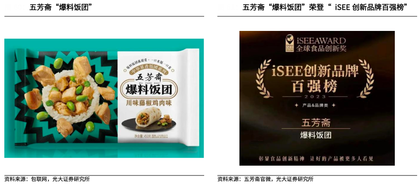 經(jīng)典案例:根據(jù)包聯(lián)網(wǎng)、五芳齋官微、光大證券研究所等綜合資訊表明,五芳齋公司的飯團(tuán)包括蛋黃肉松、黑椒牛柳、藤椒雞肉等多種口味,其“爆料飯團(tuán)”憑借創(chuàng)新卓越的品質(zhì),榮登“iSEE 創(chuàng)新品牌百強(qiáng)榜”。月餅的成功為公司品類擴(kuò)產(chǎn)實(shí)現(xiàn)了較好的打樣,而隨著公司在電商、線下多維渠道的深化布局,青團(tuán)、飯團(tuán)等第三成長曲線有望逐步展開,進(jìn)一步熨平經(jīng)營的季節(jié)性。