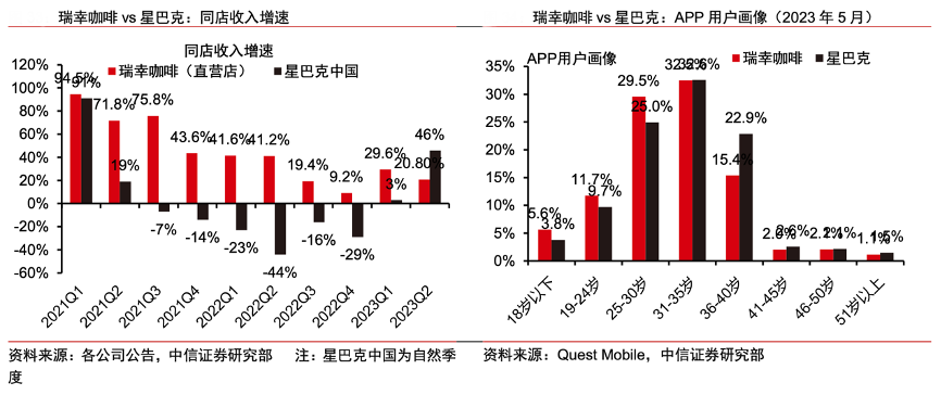 經(jīng)典案例:根據(jù)各公司公告、中信證券研究部等綜合資訊表明,從市場(chǎng)反饋來(lái)看,瑞幸具備較強(qiáng)的產(chǎn)品研發(fā)能力,2021 年公司推出 113 款新品,2022 年推出 108 款新 飲品,領(lǐng)先行業(yè)水平。疊加出色的消費(fèi)洞察和營(yíng)銷(xiāo)能力,2021年以來(lái)推出了生椰拿鐵、厚乳拿鐵、椰云拿鐵、生酪拿鐵、冰吸 生椰拿鐵等“爆品”,帶動(dòng)公司單量快速增長(zhǎng),同店收入持續(xù)同比雙位數(shù)增長(zhǎng)。