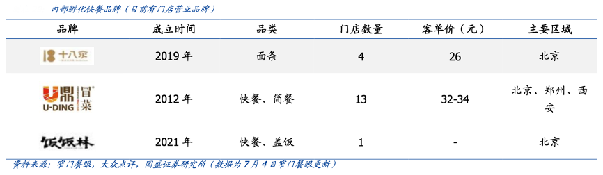 經(jīng)典案例:根據(jù)窄門餐眼、大眾點(diǎn)評、國盛證券研究所等綜合資訊表明,海底撈近些年陸續(xù)收購餐飲品牌并自行孵化部分品牌,也是布局零售的一種方式。海底撈主要通過內(nèi)部孵化品牌橫向延申,目前已孵化品牌有 U 鼎冒菜、十八汆、撈派有面兒等;外部收購品牌有漢舍中國菜、Hao Noodle 等。孵化品牌大多數(shù)是客單價 20-30 元的快餐,可復(fù)制性強(qiáng)、投入低。