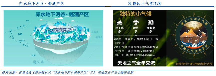 經(jīng)典案例:根據(jù)云酒頭條、長城證券產(chǎn)業(yè)金融研究院等綜合資訊表明,貴州珍酒釀酒水源,便取自石子鋪赤水地下河谷上游水。不僅水質(zhì)優(yōu)于地表水,純凈而甘洌,還有硬度低、微量元素豐富等特點。從小環(huán)境看,匯川區(qū)周圍豐富的地下水在地?zé)嶙饔孟峦ㄟ^斷裂束蒸發(fā)到空氣中,遇冷成雨又回到地下,循環(huán)往復(fù)形成天地之氣全年交流的“遵義匯川小氣候”,讓釀酒微生 物繁衍迭代的質(zhì)量和時間比其它地方更好更長。