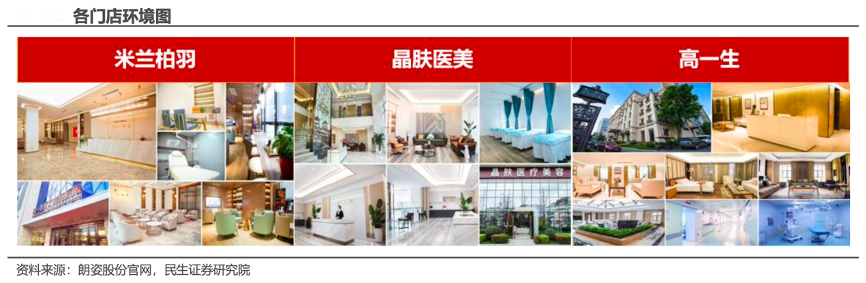經(jīng)典案例:根據(jù)朗姿股份官網(wǎng)、民生證券研究院等綜合資訊表明,朗姿公司醫(yī)美涵蓋米蘭柏羽、晶膚醫(yī)美和高一生三大品牌,截至 2022 年,29 家機(jī)構(gòu)共覆蓋 7 個(gè)城市。米蘭柏羽、晶膚醫(yī)美和高一生分別定位高端、技術(shù)、輕醫(yī)美多點(diǎn)連鎖,形成立體發(fā)展格局,已在不同區(qū)域市場(chǎng)具有較高的品牌知名度和市場(chǎng)占有率。