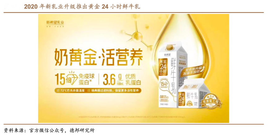 經(jīng)典案例:根據(jù)官方微信公眾號、德邦研究所等綜合資訊表明,新乳業(yè)作為業(yè)界首個“只賣當天” 的產(chǎn)品,24 小時鮮牛乳與市場上其他保質(zhì)期一般為六個月的產(chǎn)品相比,具有 24 小時限時銷售的最新鮮、原奶標準 10 倍于國家標準的最安全、低溫殺菌的最營養(yǎng) 和零添加的最天然等突出優(yōu)點,上市后好評如潮。