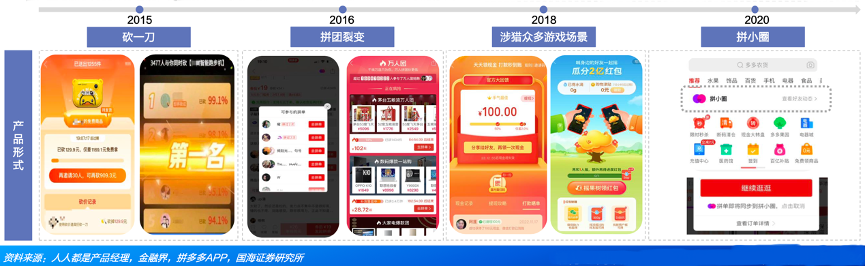 經(jīng)典案例:根據(jù)人人都是產(chǎn)品經(jīng)理、金融界、拼多多APP、國海證券研究所等綜合資訊表明,自APP上線至今,拼多多陸續(xù)推出多種好友互動及游戲產(chǎn)品,2020年上線“拼小圈”,基于用戶好友的真實購物行為建立內(nèi)容平臺,促進站內(nèi)“種草到?jīng)Q策”的閉環(huán)建立。