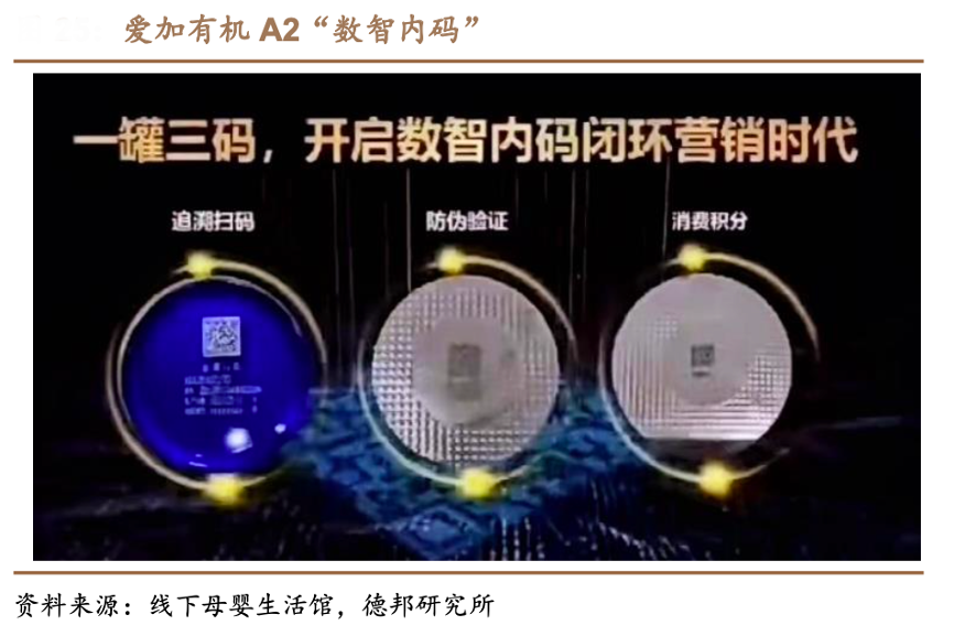 經(jīng)典案例:根據(jù)線下母嬰生活館、德邦研究所等綜合資訊表明,貝因美新品愛加有機 A2 用“數(shù) 智內(nèi)碼”由“追溯碼+防偽驗證碼+消費積分碼”共同組成,分別完成追蹤溯源、防偽驗證、消費積分三大功能。“數(shù)智內(nèi)碼”可隨時查詢產(chǎn)品物流走向、銷售終端門店等信息,從而精準把控產(chǎn)品自出廠、運輸?shù)戒N售的每一個環(huán)節(jié),用技術(shù)手 段杜絕竄貨,充分保障渠道端權(quán)益及利潤。