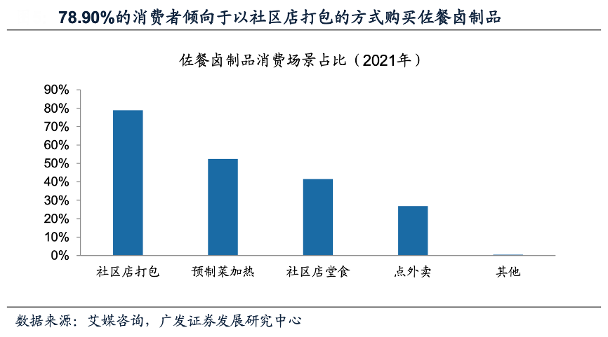 經(jīng)典案例:根據(jù)艾媒咨詢、廣發(fā)證券發(fā)展研究中心等綜合資訊表明,佐餐鹵制品渠道以菜場(chǎng)鋪位、社區(qū)門店、沿街門店店為主,方便居民在社區(qū)周邊生活圈購(gòu)買。根據(jù)艾媒咨詢調(diào)研,78.90%的消費(fèi)者傾向于以社區(qū)店打包的方式購(gòu)買佐餐鹵制品。