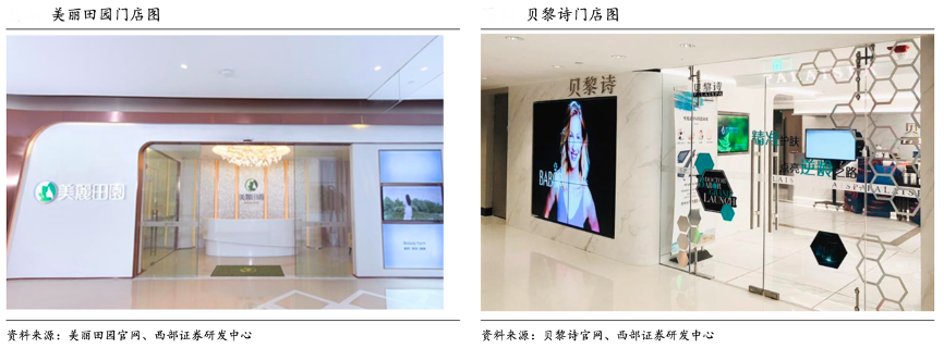 經典案例:根據美麗田園官網、貝黎詩官網、西部證券研發(fā)中心等綜合資訊表明,美麗田園2005 年,公司收購貝黎詩品牌,與美麗田園共同專注日常面部及身體護理服務,協(xié)同擴大品牌效應。公司服務項目旨在改善消費者皮膚和身體狀況,屬于非醫(yī)療、非侵入式美容服務項目。2019-2021 年,公司傳統(tǒng)美容服務項目營業(yè)收入分別為8.76 億元、 8.48 億元、10.47 億元,總營收占比分別為 62.35%、56.42%、58.78%。