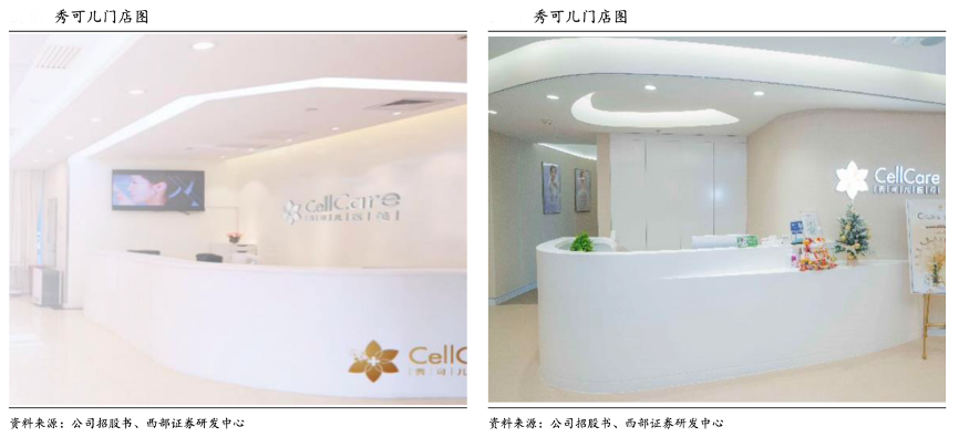 經(jīng)典案例:根據(jù)公司招股書、西部證券研發(fā)中心等綜合資訊表明,美麗田園公司醫(yī)療美容服務主要集中在非外科手術項目,主要包括能量儀器服務與注射服務。秀可兒主要在全國一二線城市的地標性商業(yè)中心布局,定位高品質(zhì)醫(yī)美服務。秀可兒門店在條件允許情況下,還會提供重瞼手術、抽脂手術、脂肪填充手術等手術類醫(yī)療美容服務。目前該門店服務涵蓋超 300 個 SKU,能夠提供 10 類能量儀器與注射服務,為客戶提供正規(guī)、安全、專業(yè)的產(chǎn)品與服務。