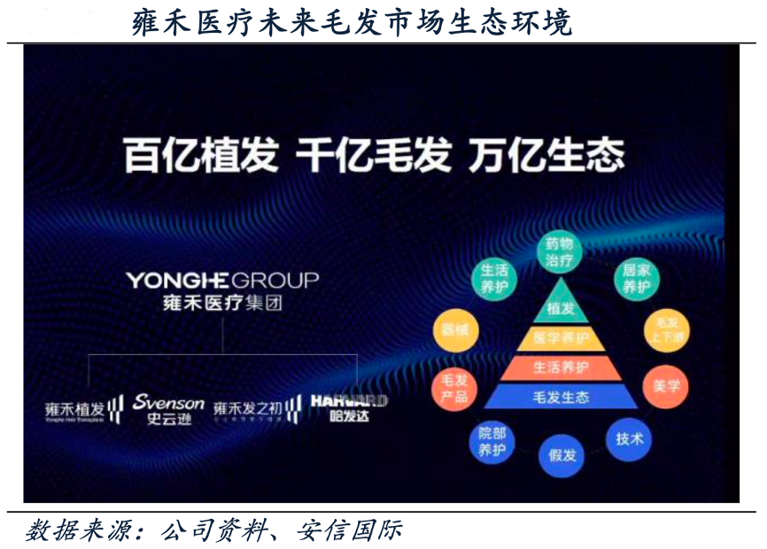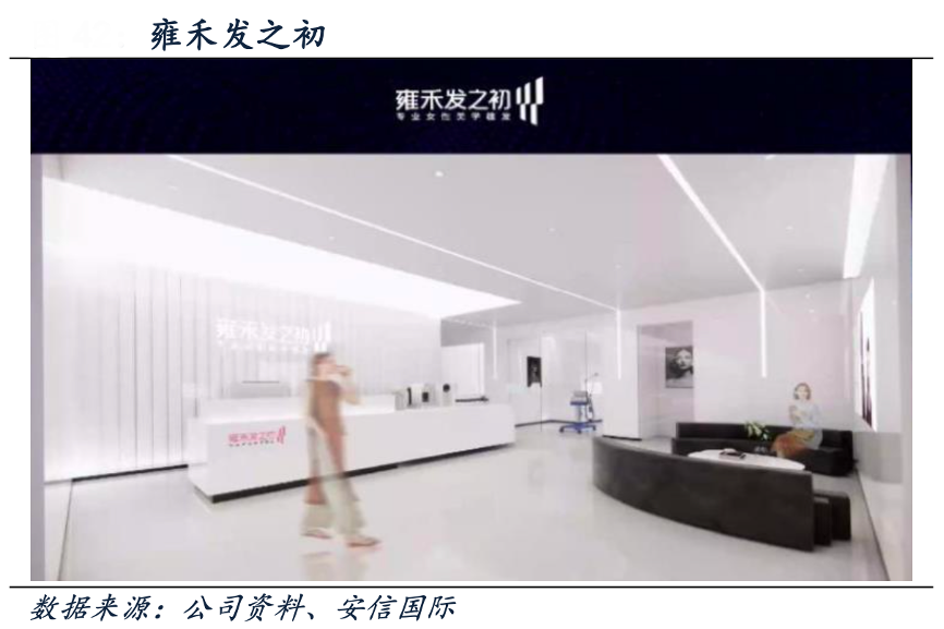 經(jīng)典案例:根據(jù)公司資料、安信國際等綜合資訊表明,“女性+美學(xué)”是雍禾發(fā)之初品牌的兩個(gè)關(guān)鍵詞,該品牌于2021 年底推出并專注于女性植發(fā),創(chuàng)新構(gòu)建女性美學(xué)毛發(fā)診療體系,提供包括坐位取發(fā)應(yīng)用、長發(fā)取發(fā)、長發(fā)種植、舒 適化植發(fā)臨床應(yīng)用等服務(wù)。
