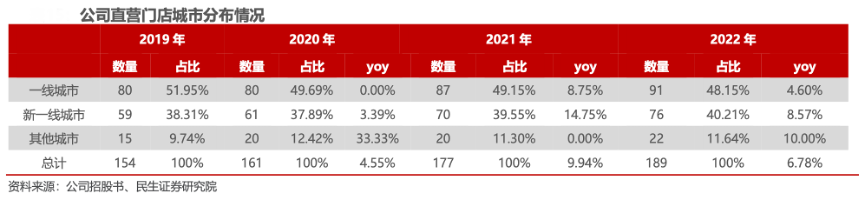 門店均以核心商圈為中心設立,通過布局高端商圈,公司積累了與自身經(jīng)營特點相匹配的優(yōu)質(zhì)客戶流量,為后續(xù)客單價穩(wěn)定、客流量穩(wěn)定、復購率穩(wěn)定及數(shù)據(jù)化會員庫的建立奠定了良好基礎。