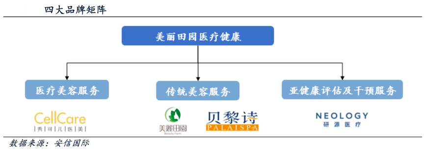 經(jīng)典案例:根據(jù)安信國(guó)際等綜合資訊表明,經(jīng)過(guò) 30 年沉淀,美麗田園公司打造多品牌組合,提供多元化服務(wù)涵蓋傳統(tǒng)美容服務(wù)需求(品牌:美麗田園、貝黎詩(shī))、醫(yī)療美容服務(wù)需求(品牌:秀可兒)和亞健康評(píng)估及干預(yù)服務(wù)需求(品牌:研源)。