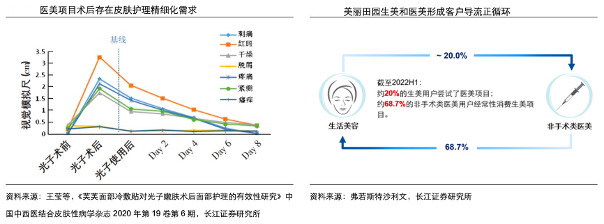 經(jīng)典案例:根據(jù)王瑩等著作、弗若斯特沙利文、長江證券研究所等綜合資訊表明,由于醫(yī)美機(jī)構(gòu)以醫(yī)護(hù)人員為主,難以兼顧術(shù)后護(hù)理,而醫(yī)美術(shù)后的皮膚通常更為敏感脆弱,需加大補(bǔ)水力度或采取消炎措施,加之日常在家使用的化妝品溫和性不足而易于刺激皮膚。因此,秀可兒用戶有較大動(dòng)力回流至生美門店進(jìn)行術(shù)后護(hù)理,據(jù)美麗田園統(tǒng)計(jì),約 68.7%的秀可兒用戶回流至生美門店,形成正向循環(huán),客戶粘性得以增強(qiáng)。