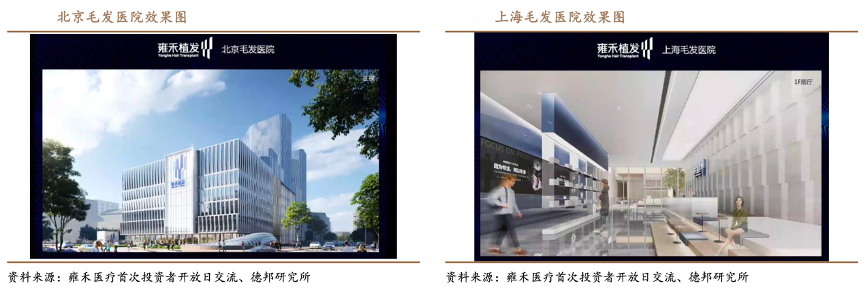 經(jīng)典案例:根據(jù)雍禾醫(yī)療首次投資者開放日交流、雍禾醫(yī)療官網(wǎng)、德邦研究所等綜合資訊表明,雍禾醫(yī)療在高線城市設(shè)立綜合醫(yī)療養(yǎng)固服務(wù),做大城市深度。北京院部 2018- 2020 年收入分別為 1.42 億、1.45 億、1.40 億,已基本達(dá)到天花板,公司在北京東大橋新建萬平米毛發(fā)醫(yī)院,上海 8000 平米毛發(fā)醫(yī)院正在裝修,一線城市毛發(fā)醫(yī)院除植發(fā)科外,另設(shè)立多個毛發(fā)???,如脫發(fā)科、復(fù)查科、國際科、女性美學(xué)科,立足于打造綜合型毛發(fā)醫(yī)院。