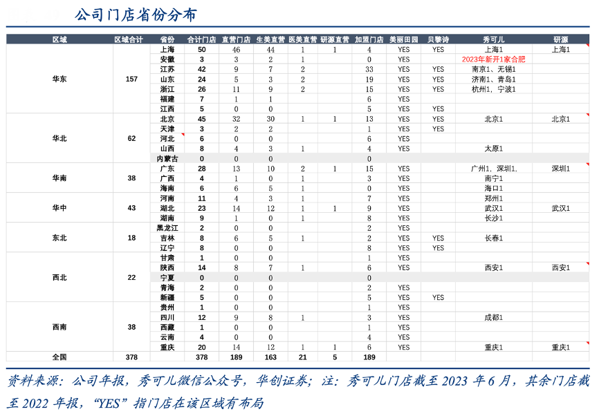經(jīng)典案例:根據(jù)公司年報(bào)、秀可兒微信公眾號(hào)、華創(chuàng)證券等綜合資訊表明,美麗田園公司醫(yī)美拓店穩(wěn)健,截至2023 年 6 月底僅 21 家門(mén)店,主要圍繞一線和新一線城市布局,選址需評(píng)估該城市是否有能力提供足量的會(huì)員導(dǎo)流至醫(yī)美,在評(píng)估該城市具備明確的醫(yī)美需求時(shí)才著手布局,如該城市已擁有相對(duì)體量的忠誠(chéng)生美會(huì)員。
