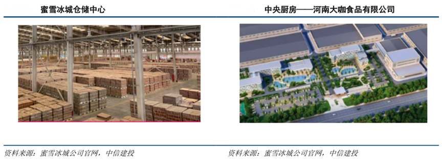 經(jīng)典案例:根據(jù)蜜雪冰城公司官網(wǎng)、中信建投等綜合資訊表明,蜜雪冰城萬余家的門店對(duì)上游奶、茶、果、糖的采購有議價(jià)權(quán),能以低成本采購高品質(zhì)食材,其通過自建工廠實(shí)現(xiàn)核心原料自產(chǎn)化,不僅實(shí)現(xiàn)以成本價(jià)供貨加盟商,省去了中間商賺差價(jià)的環(huán)節(jié),還確保從源頭上來把控產(chǎn)品質(zhì)量。此外,其在鄭州建 立倉儲(chǔ)物流中心,并全面推行物流運(yùn)輸費(fèi)免費(fèi)政策,確保在低價(jià)高質(zhì)的產(chǎn)品前提下,加盟商還有利潤空間,形成研發(fā)生產(chǎn)+倉儲(chǔ)物流+運(yùn)營管理的完整產(chǎn)業(yè)鏈。