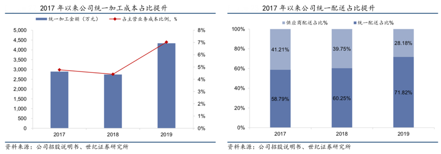 經(jīng)典案例:根據(jù)公司招股說明書、世紀證券研究所等綜合資訊表明,同慶樓公司于 2014 年成立了中央廚房,集中對公司門店所需的半成品進行加工和配送以保證食品質量安全,提升菜品品質穩(wěn)定性,目前門店 SKU 通過中央廚房統(tǒng)一配送、標準化烹飪工藝以及門店自主創(chuàng)新方式的比例約為 4:3:3。