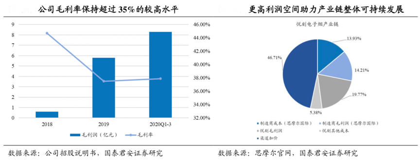經(jīng)典案例:根據(jù)公司招股說明書、思摩爾官網(wǎng)和華安證券研究所等綜合資訊表明,霧芯科技公司悅刻品牌電子煙已占據(jù)較大市場份額,其公司毛利率保持超過35%的較高水平,其與思摩爾國際的專屬工廠以及建造自有工廠,可有效降低產(chǎn)品及原材料的采購成本,更高利潤空間可讓利給全產(chǎn)業(yè)鏈和渠道,助力公司從產(chǎn)到銷整體可持續(xù)發(fā)展。
