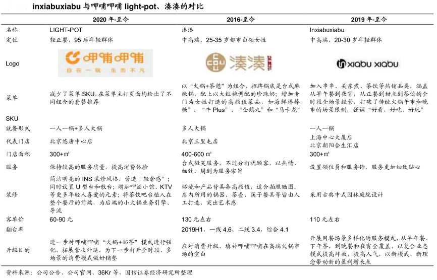 經(jīng)典案例:根據(jù)新華社、公司官網(wǎng)、公司公告、國(guó)信證券經(jīng)濟(jì)研究所等綜合資訊表明,In xiabuxiabu 是呷哺呷哺公司于 2019 年推出的子品牌,其定位中高端小火鍋,客單價(jià)介于呷哺呷哺和湊湊之間,采取“一人一鍋+茶飲”模式,在傳統(tǒng)小火鍋就餐場(chǎng)景中加入了串串、關(guān)東煮、甜點(diǎn)、 茶飲等品類,營(yíng)銷上強(qiáng)調(diào)“好吃、好玩、好看”,獨(dú)創(chuàng)跨界菜品,吸引 20-30 歲的年輕消費(fèi)群體,提高品牌年輕化形象。