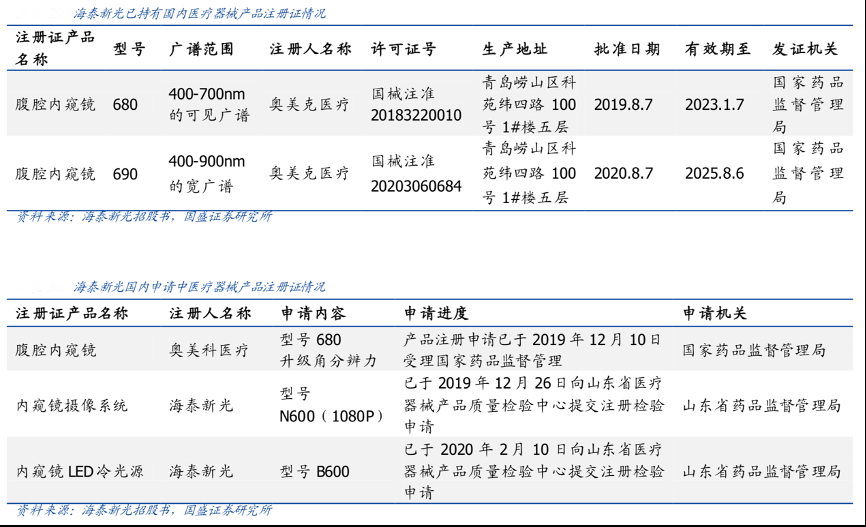 經(jīng)典案例:根據(jù)海泰新光招股書、國盛證券研究所等綜合資訊表明,目前海泰新光公司的 4K 超高清熒光內(nèi)窺鏡(腹腔鏡)已于 2020 年在國內(nèi)獲批,目前正在積極 進(jìn)行 4K 超高清圖像技術(shù)、光源技術(shù)的研發(fā),有望在 2021 年陸續(xù)獲批,未來將形成集 光 、機(jī)、電 、算技術(shù)為一體的自主品牌內(nèi)窺鏡整機(jī)系統(tǒng),為臨床醫(yī)學(xué)提供全套解決方案。
