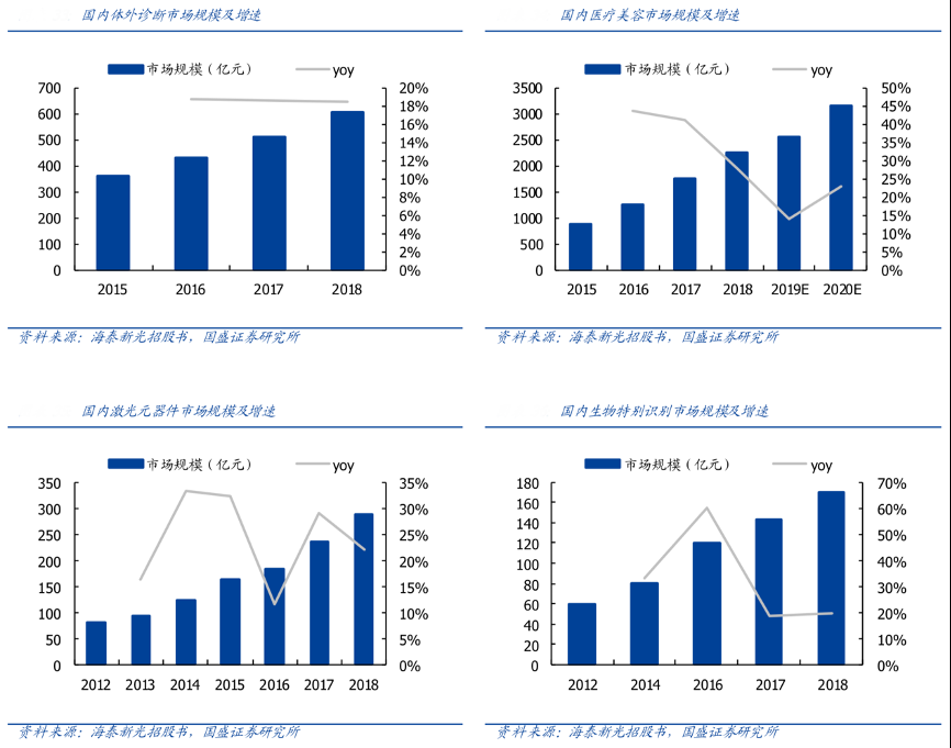 經(jīng)典案例:根據(jù)海泰新光招股書、國盛證券研究所等綜合資訊表明,目前,生物識(shí)別技術(shù)已被廣泛應(yīng)用到電子護(hù)照、生物特征身份證、銀行系統(tǒng)、 公安系統(tǒng)、電子商務(wù)、電子政務(wù)等系統(tǒng)中,提高了社會(huì)運(yùn)行效率。海泰新光的生物識(shí)別產(chǎn)品主 要包括指紋儀、掌紋儀等,主要用于公安、司法等系 統(tǒng)部門的人員指掌紋采集。根據(jù)中國電子技術(shù)標(biāo)準(zhǔn)化研究院公布的《生物特征識(shí)別白皮書》顯示,我國生物特征識(shí)別市場規(guī)模由 2012 年的 60 億 元增長至 2018 年的 170.1 億元,2009-2018 年,我國生物識(shí)別技術(shù)專利量年復(fù)合增長率達(dá) 39.43%。