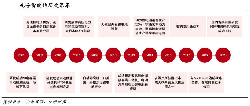 經典案例:根據(jù)公司官網(wǎng)、中銀證券等綜合資訊表明,先導智能成立于2002 年,主要業(yè)務為鋰電設備、光伏設備、3C 設備、薄膜電容器設備和燃料電池設 備等非標設備。其成立早期以電容設備為主,之后業(yè)務重心逐漸轉移至鋰電設備和光伏設備。目前鋰電設備為其核心業(yè)務,2019年營收占比為 81.4%。