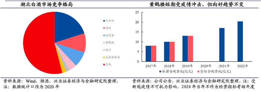 經(jīng)典案例:根據(jù)wind、徽酒、公司公告、興業(yè)證券經(jīng)濟與金融研究院等綜合資訊表明,2016年古井正式收購當?shù)孛破髽I(yè)黃鶴樓 51%的股權(quán),并對黃鶴樓酒業(yè)的營銷管理進行了一系列的整合和調(diào)整,以期快速提高湖北市場占有率。從競爭格局來看,黃鶴樓為老十三大名酒、湖北區(qū)域性品牌,處于第二梯隊,具備后發(fā)優(yōu)勢。