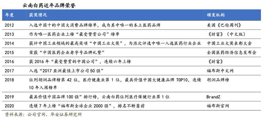 經(jīng)典案例:根據(jù)公司官網(wǎng)、華安證券研究所等綜合資訊表明,云南白藥卓著的功效譽(yù)滿中外,已經(jīng)榮獲多個(gè)實(shí)力品牌價(jià)值獎(jiǎng)項(xiàng)。在胡潤(rùn)品牌榜、BrandZ 發(fā)布的品牌排行榜中,持續(xù)穩(wěn)居行業(yè)首位。云南白藥通過(guò)不斷深挖“白藥品牌”的內(nèi)涵和核心價(jià)值,現(xiàn)已形成專(zhuān)屬白藥的核心競(jìng)爭(zhēng)優(yōu)勢(shì)。