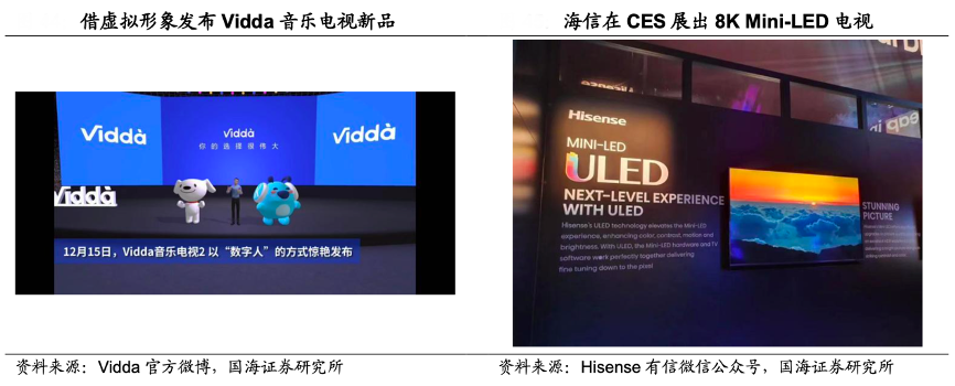 經(jīng)典案例:根據(jù)雷Vidda官方微博、Hisense有信微信公眾號(hào)、國(guó)海證券研究所等綜合資訊表明,海信視像公司在VR 虛擬現(xiàn)實(shí)技術(shù)領(lǐng)域擁有深度儲(chǔ)備,擁有海信 VR 一體機(jī)及聚好看云 VR 直播 平臺(tái),以“數(shù)字人”虛擬形象對(duì)Vidda 音樂(lè)電視 2 代 V5G 進(jìn)行發(fā)布,為 Z 世代 提供新鮮感;其引領(lǐng)激光顯示技術(shù)發(fā)展,于 2022 年 1 月展示 8K 激光顯示 解決方案和 8K 120HZ 畫(huà)質(zhì)芯片和 8K Mini-LED 電視,成本降低 45%,更高“質(zhì)價(jià)比”兼顧 Z 世代 對(duì)感性與理性的需求。