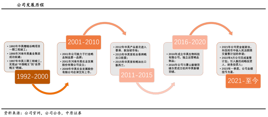 經(jīng)典案例:根據(jù)公司官網(wǎng)、公司公告、中原證券等綜合資訊表明,華英農(nóng)業(yè)公司前身成立于 1991 年,深耕肉禽養(yǎng)殖行業(yè)三十余載,主營業(yè)務(wù)包括種鴨養(yǎng)殖、孵化、禽苗銷售、飼料生產(chǎn)、商品鴨屠宰加工、凍品銷售、熟食、羽絨及羽絨制品生產(chǎn)和銷售,2009 年 12 月,公司成功于深交所上市,成為我國鴨行業(yè)首家上市公 司,也是我國唯一一家羽絨生產(chǎn)類的 A 股上市公司。