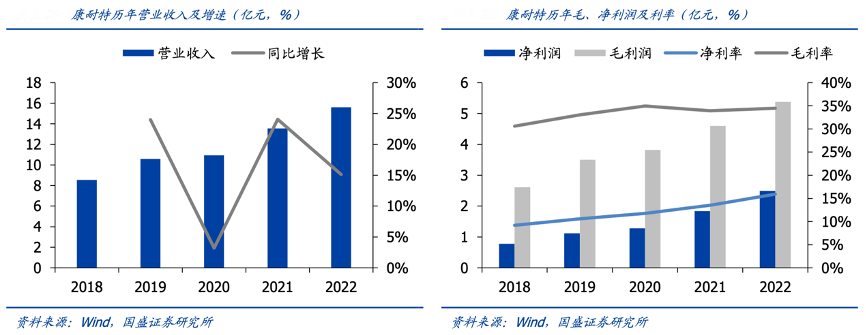 經(jīng)典案例:根據(jù)wind、國盛證券研究所等綜合資訊表明,康耐特持續(xù)提升自主品牌和定制品占比,伴隨2018-2022 年其定制片業(yè)務(wù)占比從 16.6%上升至 19.6%,同時2018-2022年公司營業(yè)收入從 8.54 億元增長至 15.61 億元(CAGR 為 16.3%),凈利潤從 0.78 億元提升至 2.49 億元(CAGR為 33.4%),凈利率從 9.2%提升至15.9%。