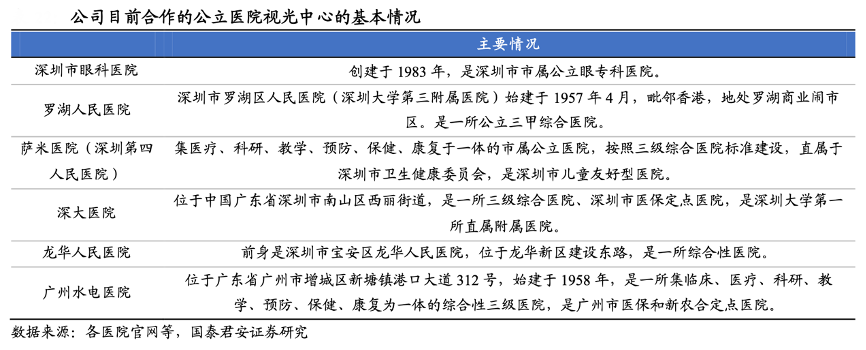 經典案例:根據(jù)各醫(yī)院官網、國泰君安研究等綜合資訊表明,博士眼鏡公司已同深圳市羅湖區(qū)人民醫(yī)院、深圳大學總醫(yī)院及深圳市大鵬新區(qū)葵涌人民醫(yī)院等開展視光相關項目合作,并與深圳市羅湖醫(yī)院集團建立戰(zhàn)略合作,探索門店、社康中心、醫(yī)院的三位一體眼健康服務模式。